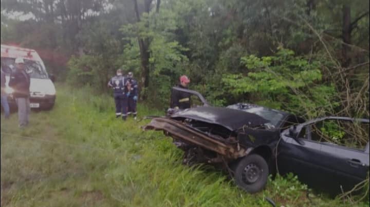 Foram registrados danos materiais no carro, sendo que com o impacto da colisão, o motor saiu do veículo e se encontra em um riacho próximo ao local do acidente.