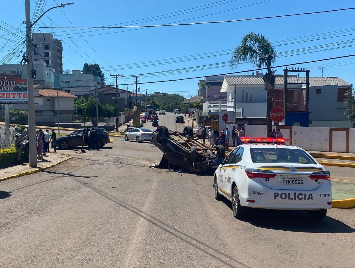 Carro Capota em cruzamento na cidade de Marau. (Veja as Fotos)